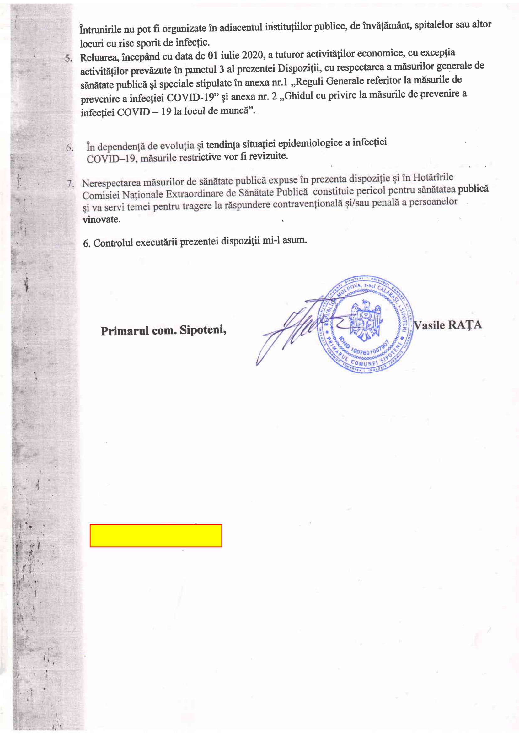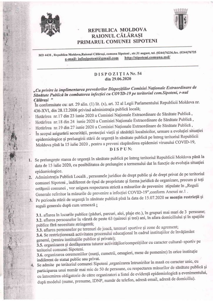 Anunț! Cu privire la implimentarea prevederilor Comisiei Naționale Extraordinare de Sănătate Publică pentru combaterea infecției cu COVID-19