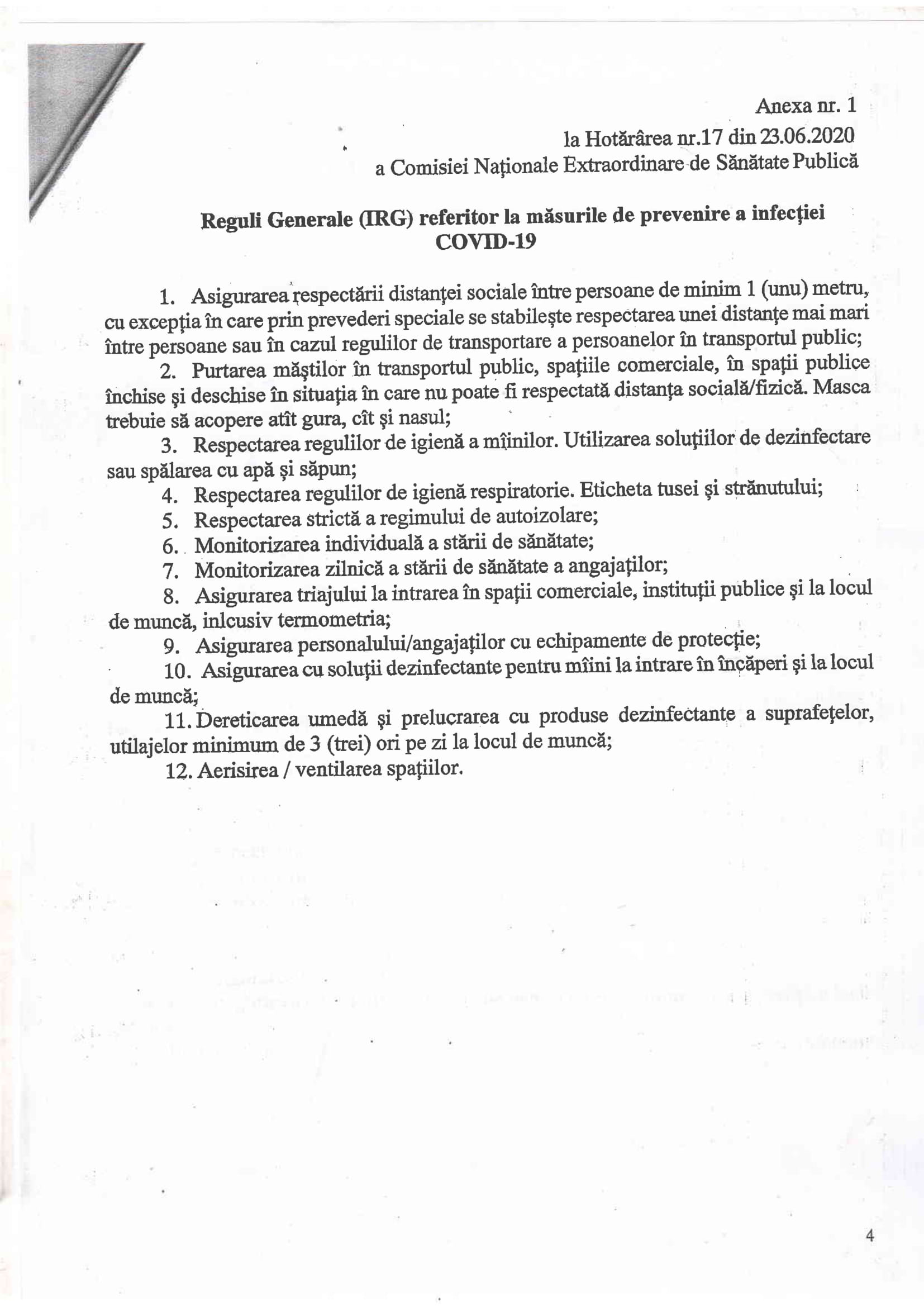 Reguli Generale referitor la măsurile de prevenire a infecției COVID-19